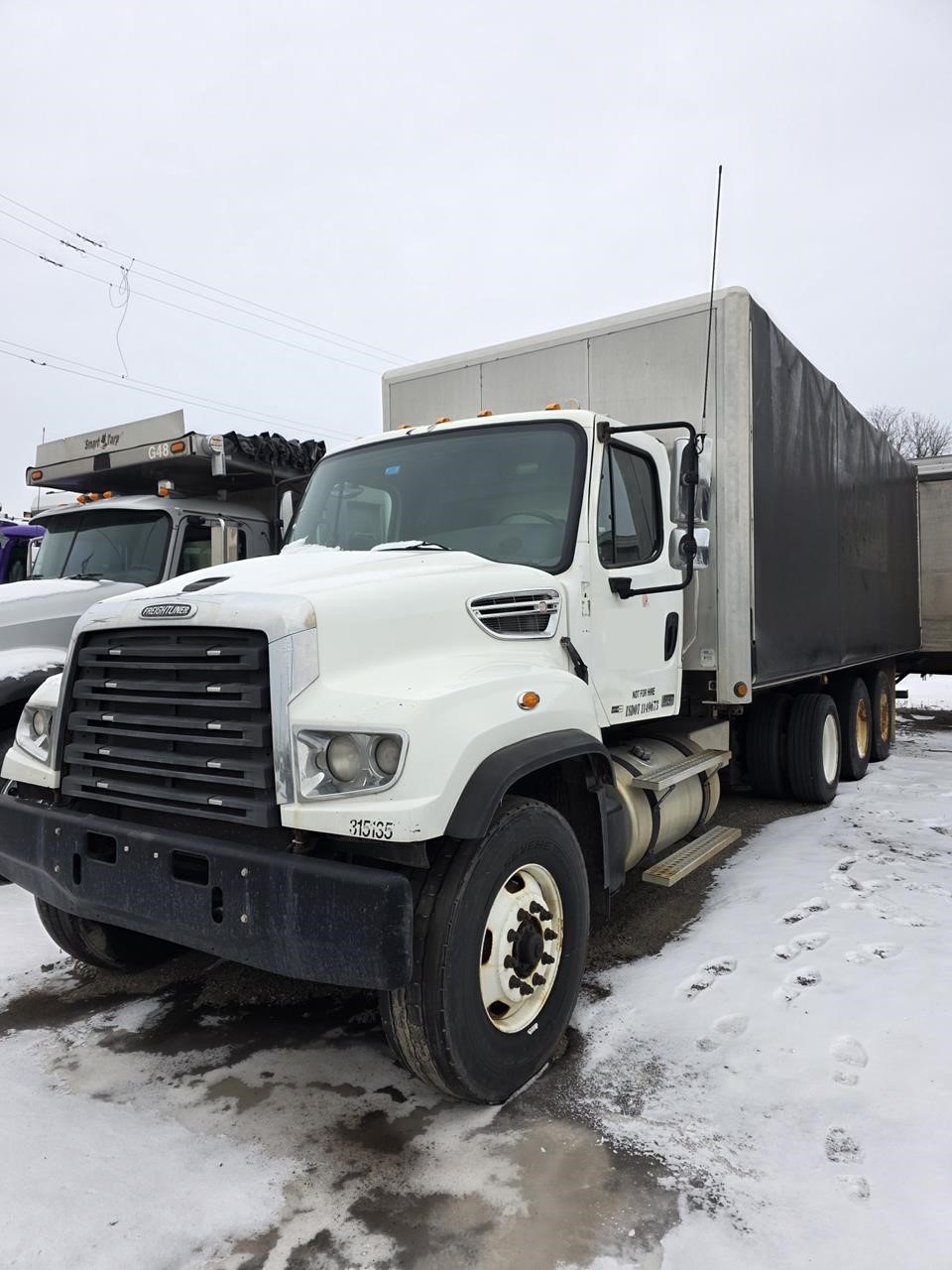 HARD TO FIND – TRI AXLE HEAVY HAULER CONESTOGA DUAL CURTAIN SIDE – 2013 FREIGHTLINE 114SD – DETRIOT DIESEL ENGINE 410 HORSE POWER – FULLER 10 SPEED MANUAL – 18,000 FRONT AXLE, 40,000 REAR AXLE – AIR RIDE 40LB SUSPENSION – 315/80r TIRES ON FRONT AXLE – 11R22.5 TIRES ON REAR – STEEL BUD RIMS- 20LB LIFT AXLE – CRUISE CONTROL. POWER STEERING – A/C – EINGE BRAKE – HEATED MIRRORS-TILT WHEEL – AIR RIDE DRIVERS SEAL HIG BACK – HIGH BACK PASSENGER SEAT – ALL ALUMINUM FUEL TANKS – GREAT WORK TRUCK !